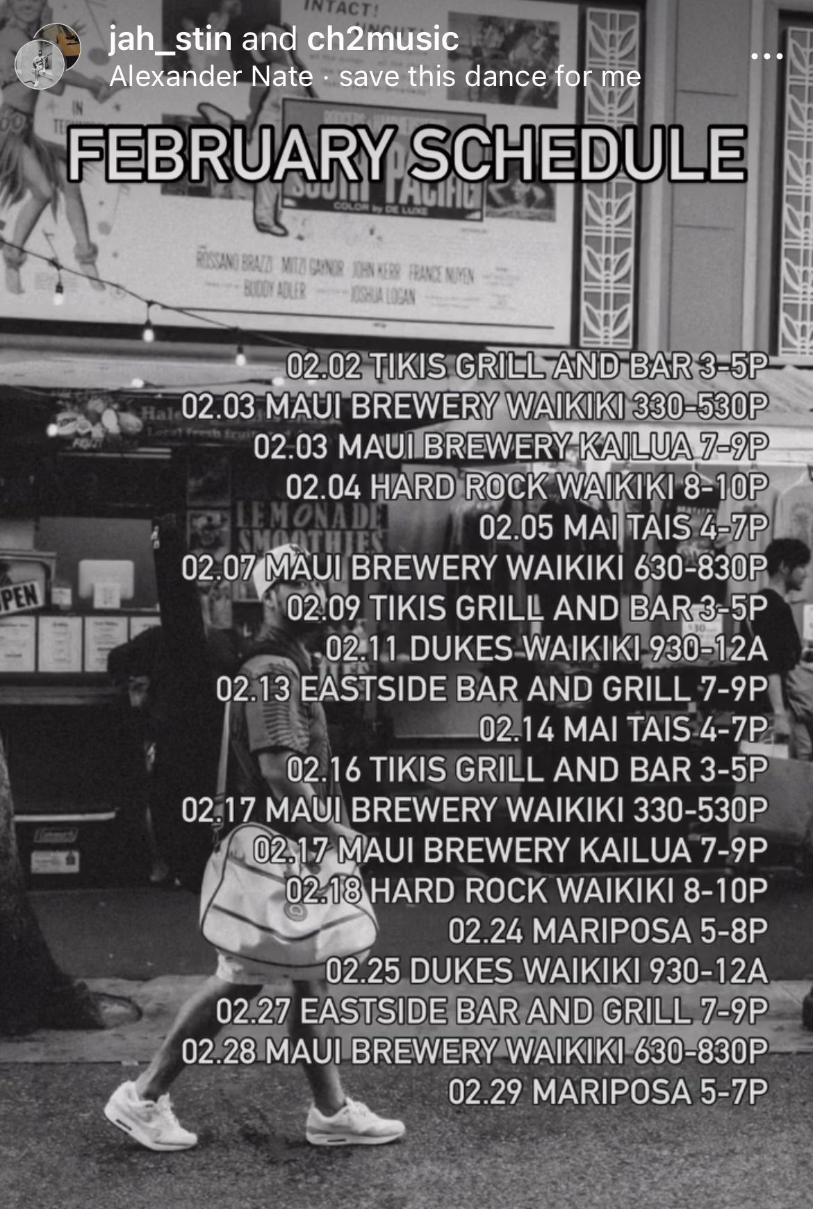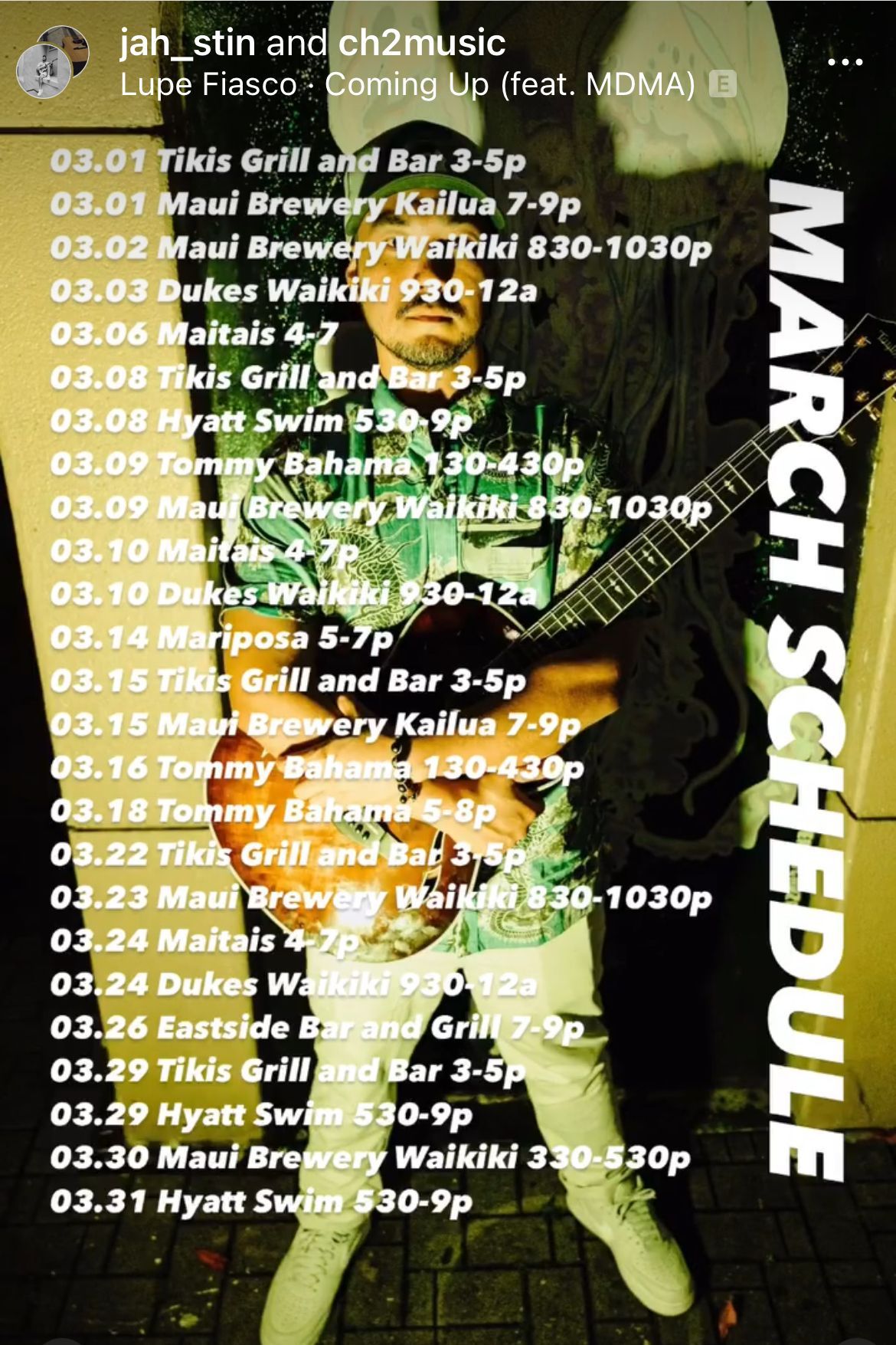 J's musical style features acoustic mashups of throwback hits and popular songs from the 2000s and other decades, making his performances engaging and nostalgic. His talent has taken him beyond Hawaii, allowing him to perform at special and private events as far away as Australia. He has also had the honor of sharing the stage at the Waikiki Shell with the renowned band Slightly Stoopid. Throughout his career, J has participated in numerous music projects and has built a reputation for captivating performances at some of Hawaii’s premier venues. His dedication to his craft and ability to connect with audiences make him a sought-after performer in the vibrant Hawaiian music scene.
